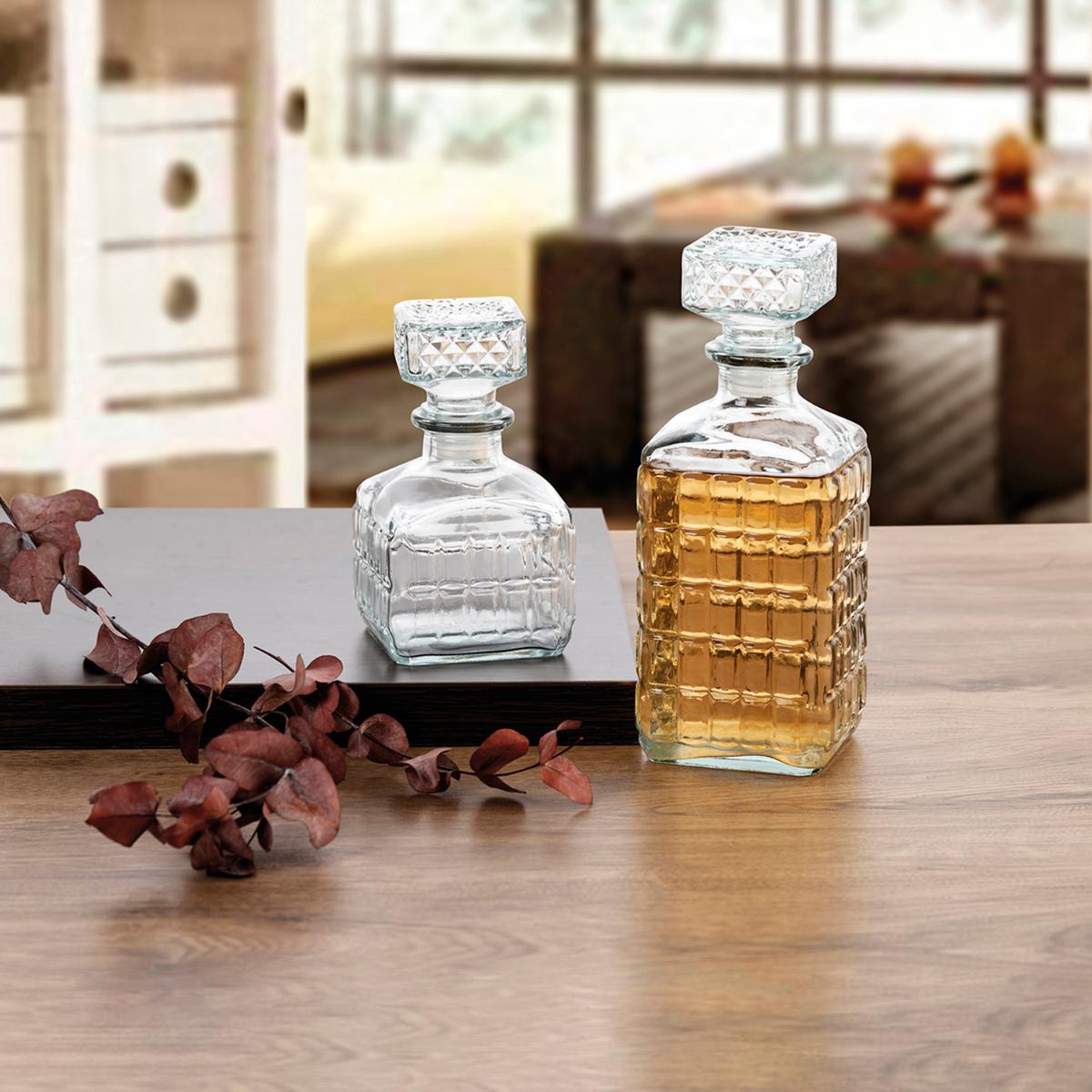 Esta botella licorera de vidrio es el toque perfecto para quienes disfrutan de presentar sus bebidas con distinción. Su diseño clásico y robusto realza cualquier espacio, desde una barra en casa hasta un evento especial. Ideal para whisky, ron, licores o incluso jugos naturales servidos con estilo.