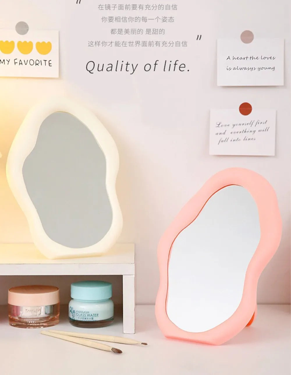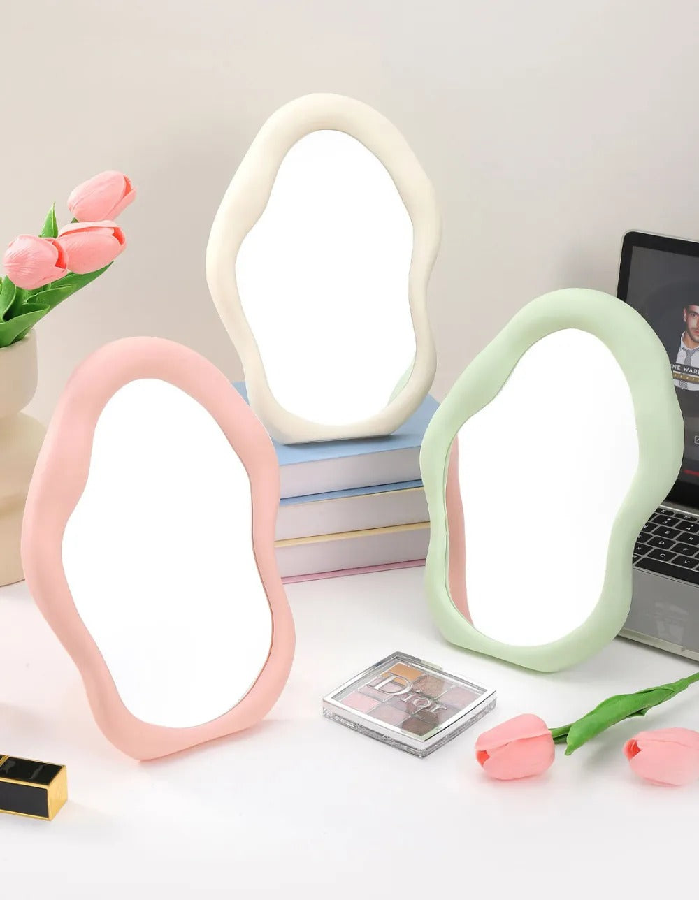 Transformá cualquier rincón en un espacio moderno, dulce y lleno de estilo con este espejo decorativo de marco ondulado, ideal para sumar un toque aesthetic a tu habitación, tocador o escritorio 💕