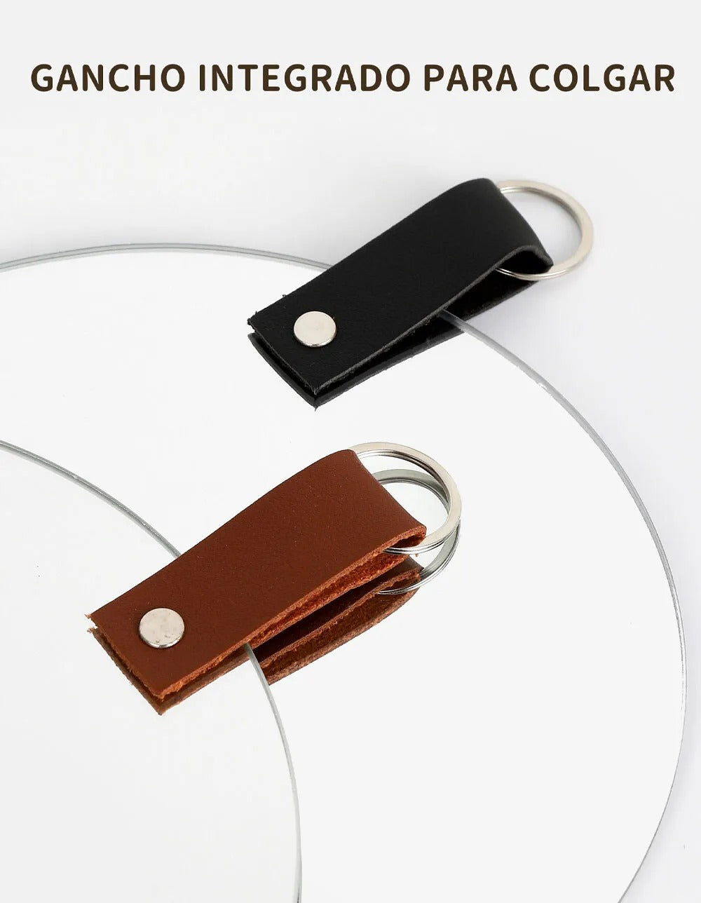 Su borde pulido le da un acabado suave y seguro, mientras que la cinta tipo cuero permite colgarlo fácilmente, aportando un toque decorativo y minimalista 🤍