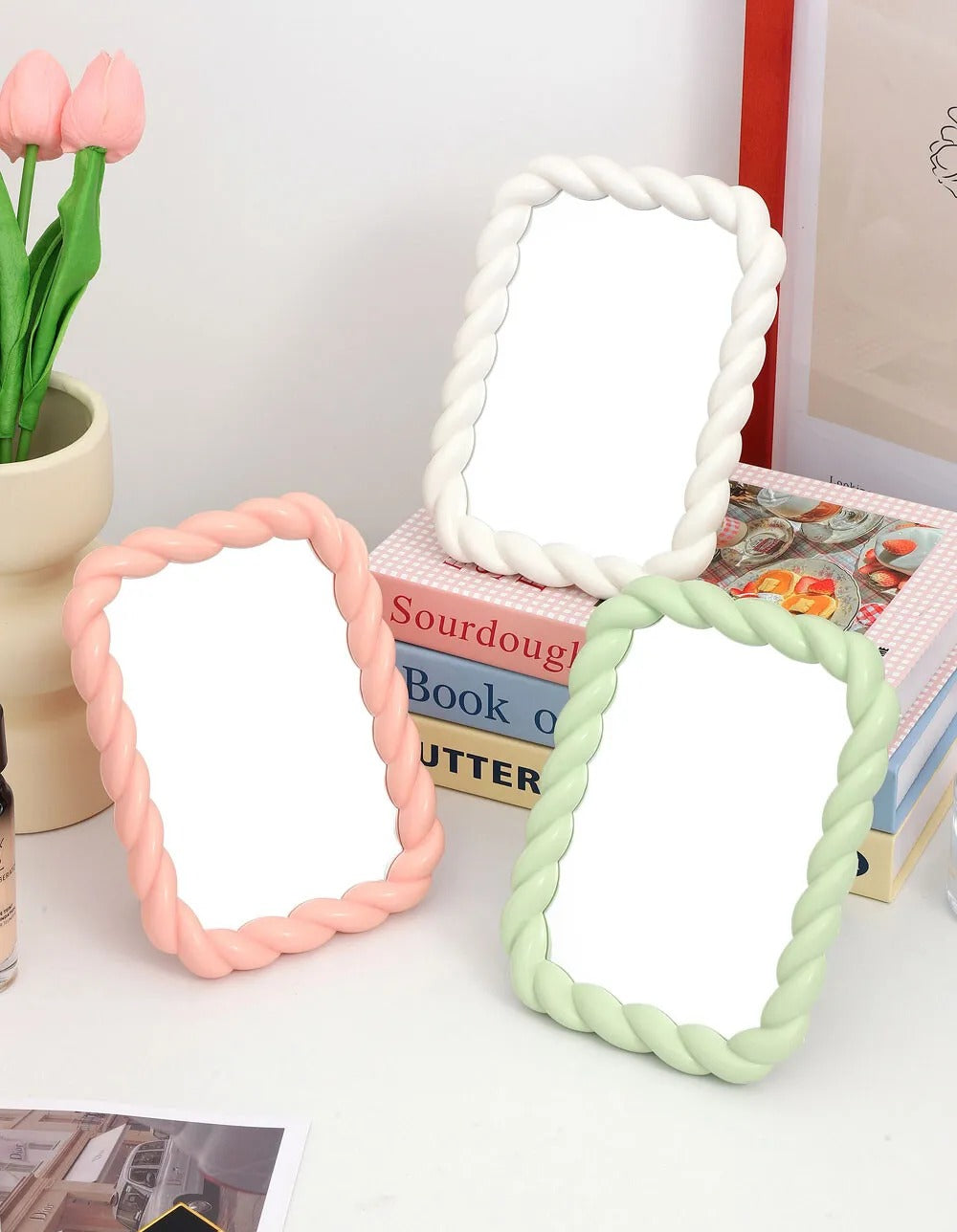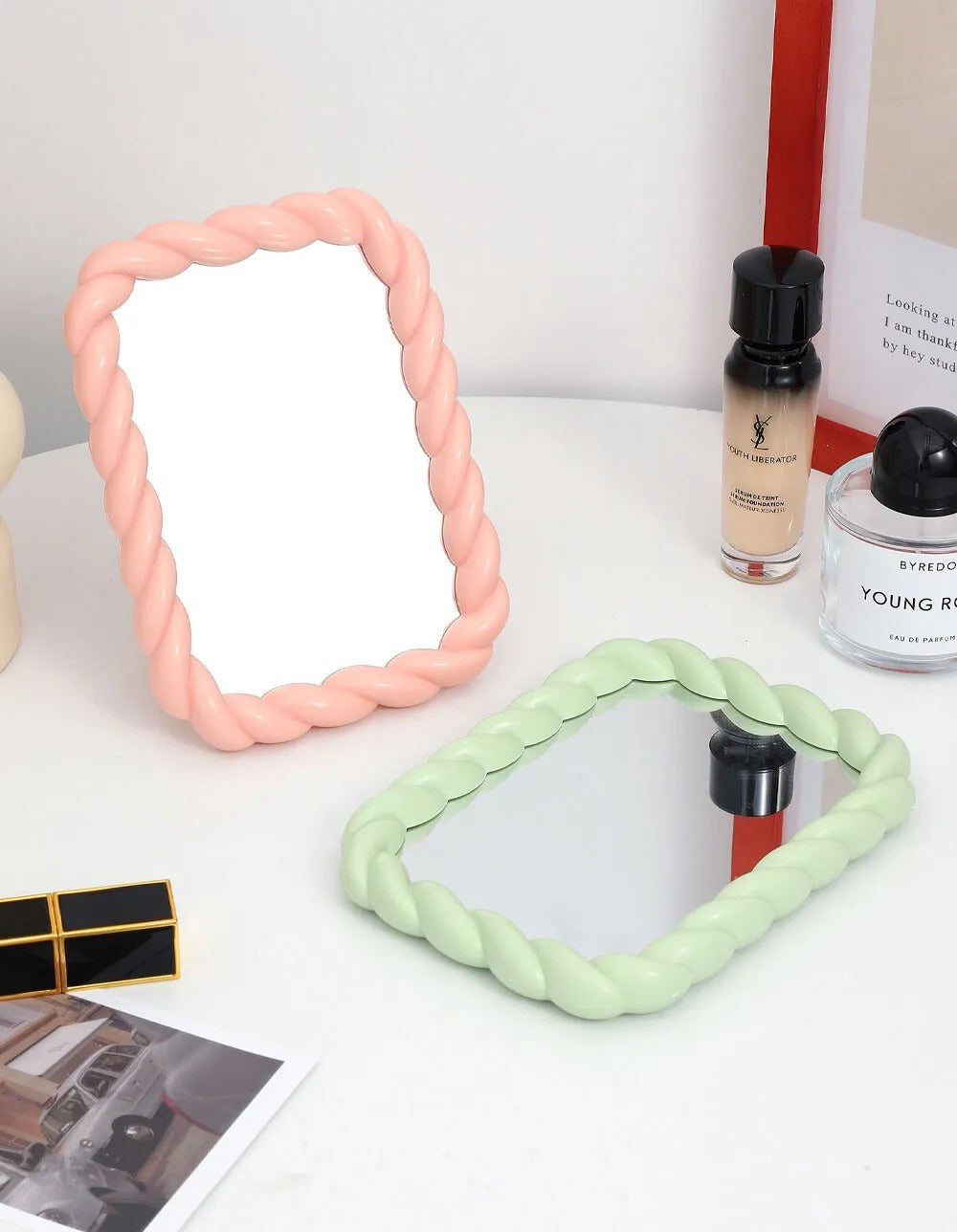 Sumale un toque de dulzura, diseño y estilo moderno a tus espacios con este espejo decorativo de marco trenzado, perfecto para darle vida a tu tocador, escritorio o rincón favorito 💕