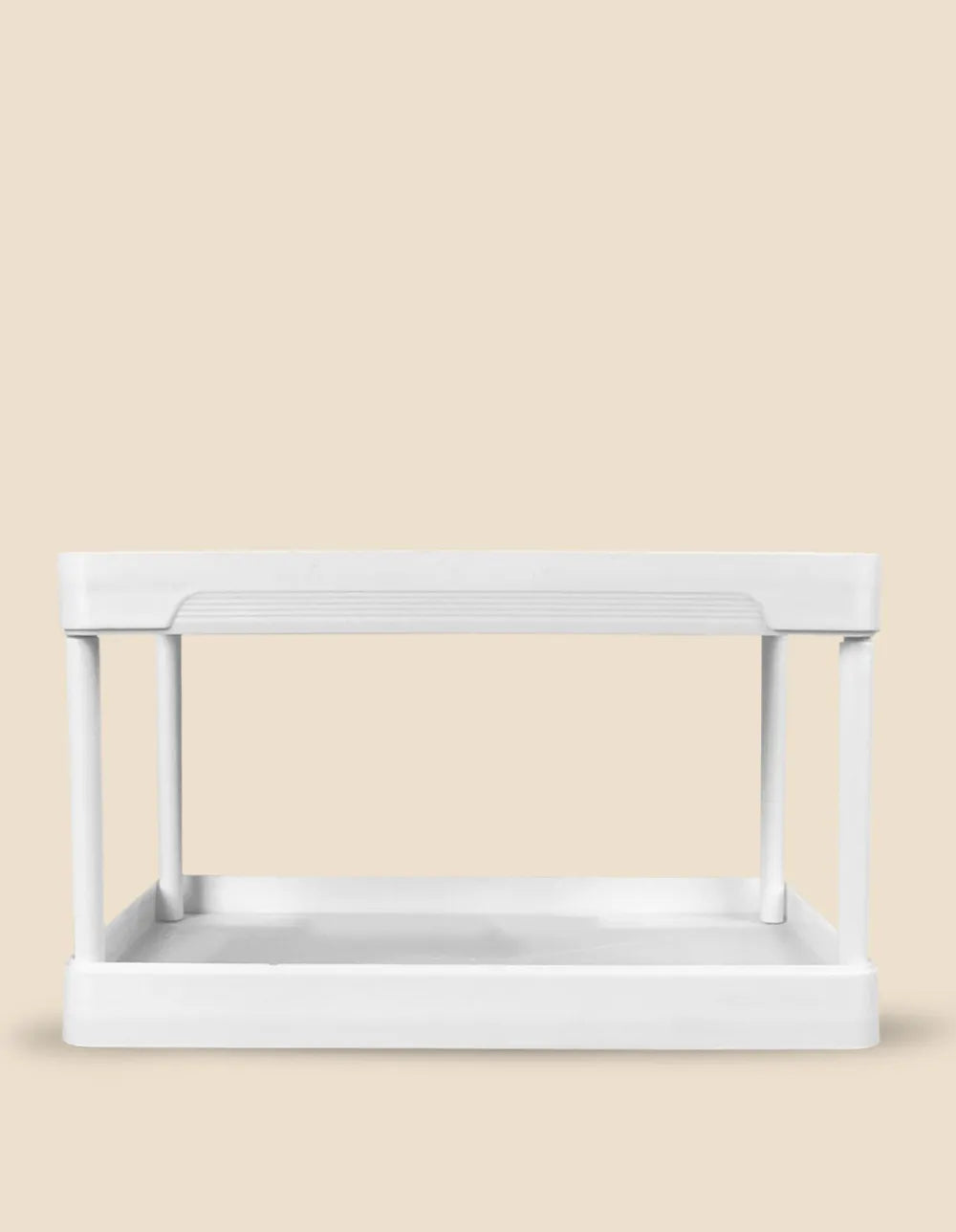 Fabricado en plástico resistente y de fácil limpieza, su estructura estable ofrece una solución moderna para organizar productos, utensilios o cosméticos con comodidad y estética.