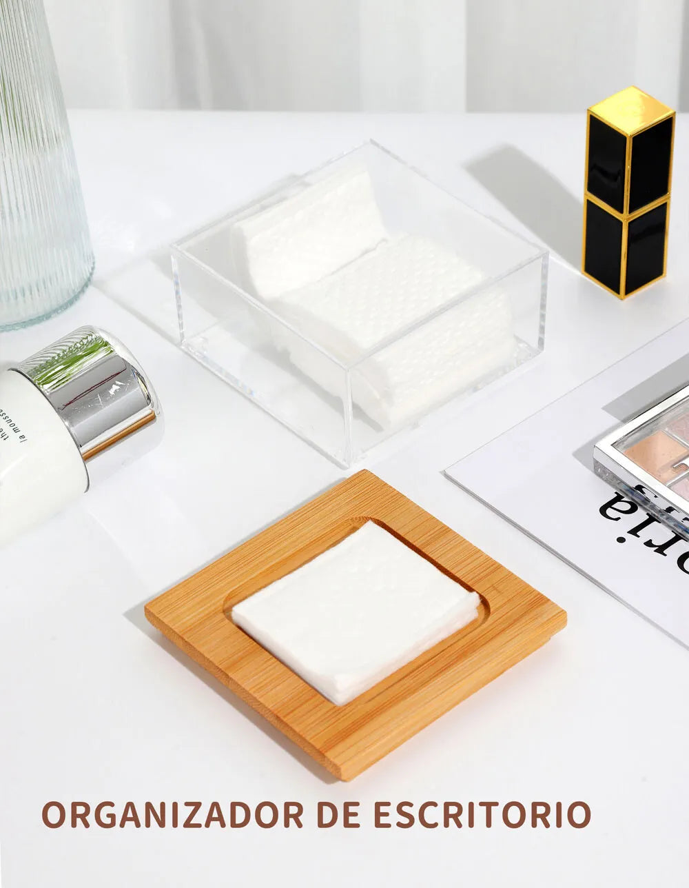 Este organizador acrílico con tapa de bambú combina diseño moderno y funcionalidad. Su estructura transparente te permite identificar el contenido de un vistazo, mientras que la tapa de bambú agrega un toque cálido y sofisticado que se adapta a cualquier ambiente.